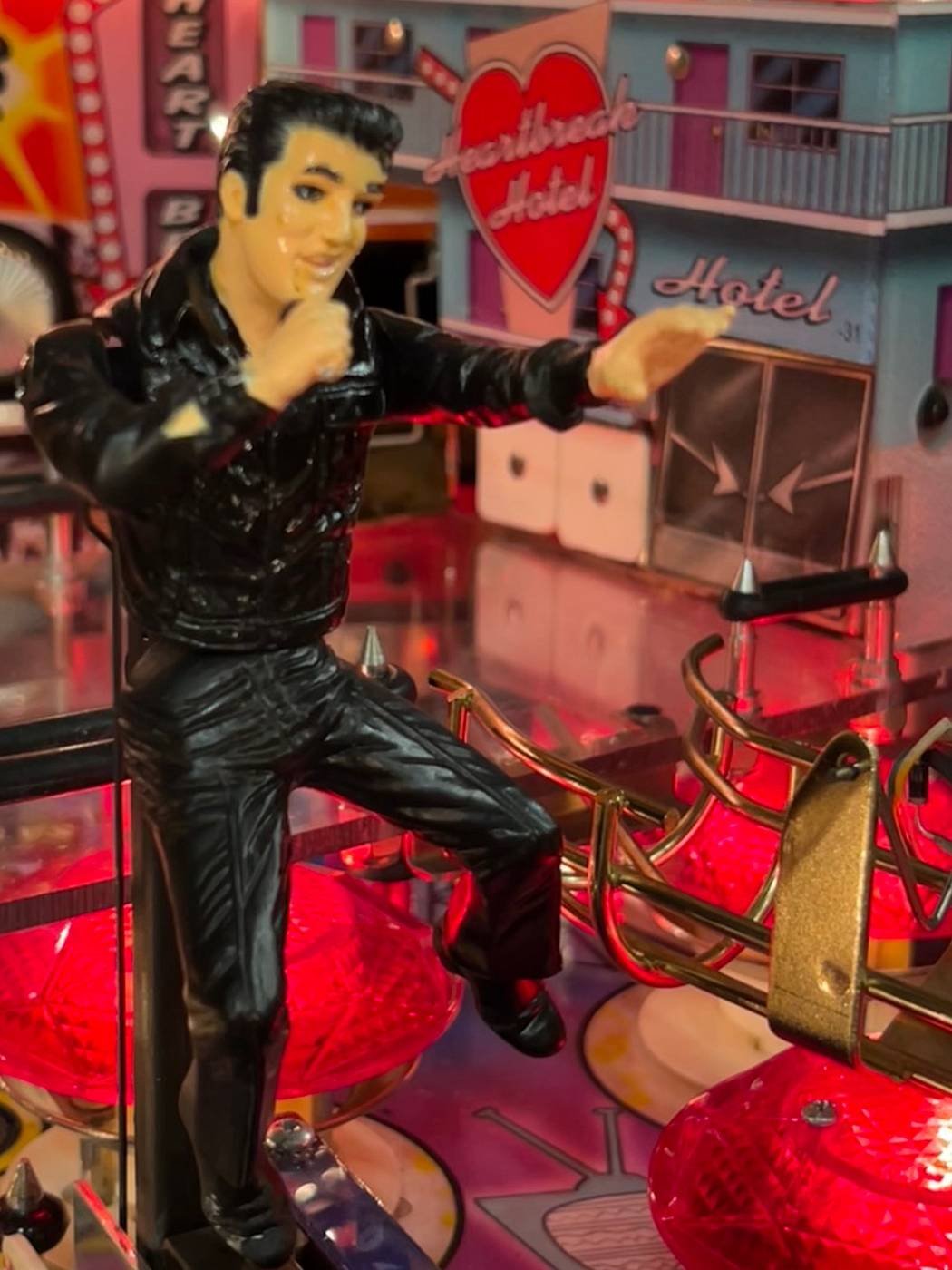 Playfield features a mechanical Elvis with shaking hips and gesturing hands moves forward and back in perfect sync with real Elvis tunes, bringing the microphone to The King Of Rock & Roll’s lips every time he sings a phrase!